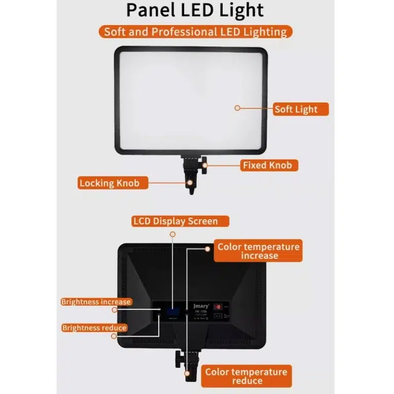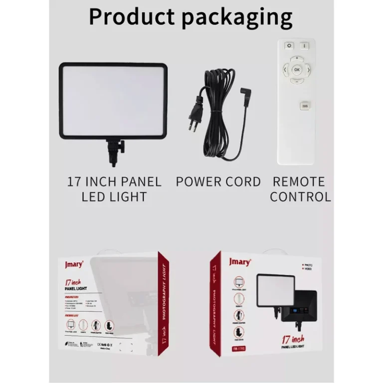 Jmary FM-17RS با طراحی سبک و بدنه مقاوم، انتخابی عالی برای استفاده در استودیوهای خانگی، فضای باز و حتی هنگام سفر است. نور نرم و یکنواخت این محصول به شما کمک میکند تصاویر و ویدئوهایی حرفهایتر ثبت کنید.